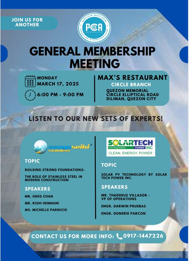 The PCA Metropolitan Chapter is the leading network of construction professionals, engineers, and builders in the National Capital Region — working hand in hand to promote sustainable growth and uphold the highest standards in the Philippine construction industry.